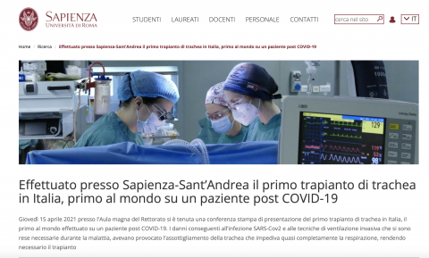 Starting training in Thoracic Surgery, “La Sapienza” University of Rome, Sant’Andrea Hospital, November 2019.