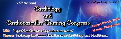 Conference Series .Ltd is esteemed to invite you to join the 26th Annual Cardiology and Cardiovascular Nursing Congress which will be held from August 09-10, 2018 Manila, Philippines which includes prompt keynote presentations, Oral talks, Poster presentations and Exhibitions.