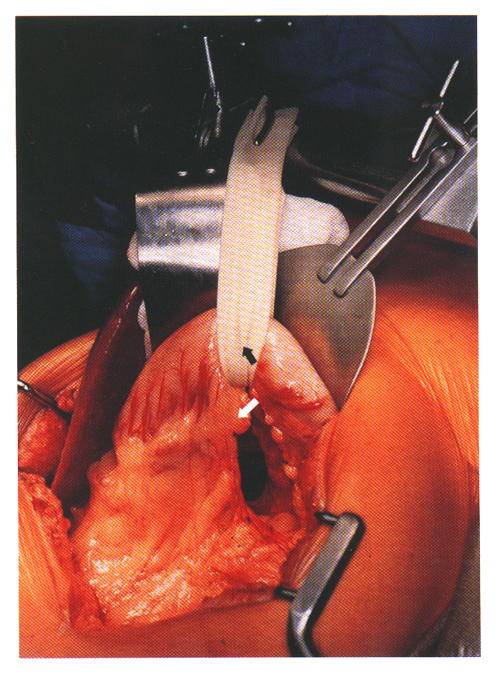 • If there is any difficulty maneuvering the stomach tube into the neck, because of a tight thoracic inlet or stomach length, do not struggle. Stop and consider adding a partial upper sternotomy. Even division of the manubrium only will widen the outlet and permit anastomosis 1-3 cm lower.